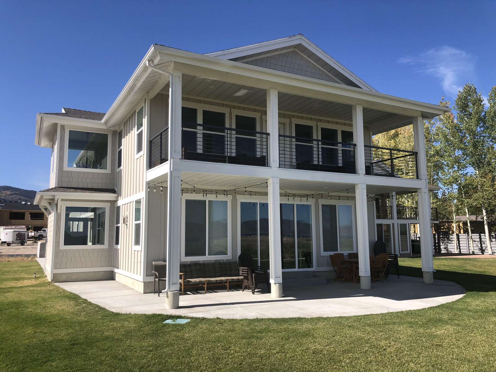 - Private backyard patio and covered deck